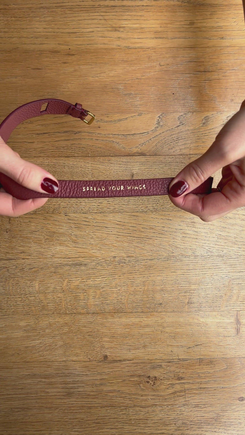 Depuis le premier jour, nous glissons le mantra "SPREAD YOUR WINGS" (qui signifie "Déployez vos ailes") à l'intérieur de chacun de nos produits. Avec le bracelet Billie, il sera pour la première fois embossé à l'extérieur, visible de tous, et surtout...de vous ! Chaque jour et à chaque instant, jetez un petit coup d'œil à votre bras : votre bracelet sera le meilleur allié de vos journées pour ne jamais oublier que vous êtes capable de déployer vos ailes.